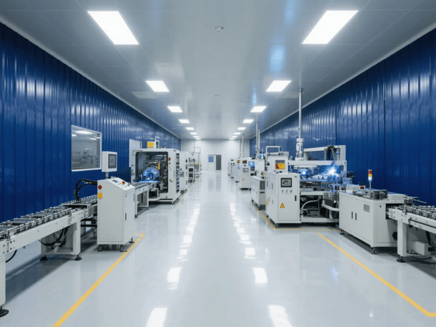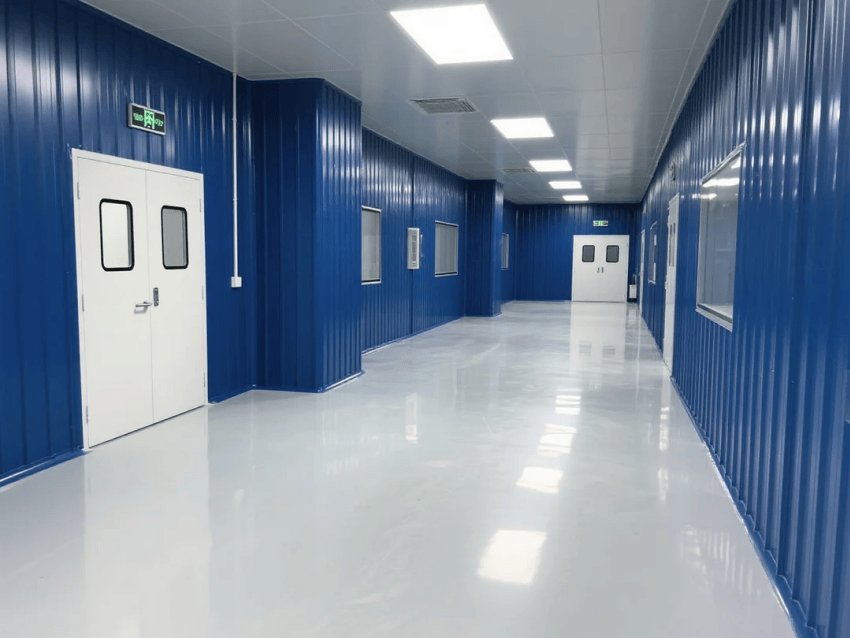 車間采用模塊化潔凈室結(jié)構(gòu),墻體采用50mm厚深藍抗菌彩鋼板,接縫處采用圓弧處理工藝。自動化沖壓線與激光焊接工作站呈U型交替布局,工作站間設(shè)置深灰不銹鋼傳遞窗,確保物料流轉(zhuǎn)潔凈度。吊頂系統(tǒng)配置FFU高效過濾單元,維持≥20次/h換氣次數(shù),氣流組織采用頂送側(cè)回模式。