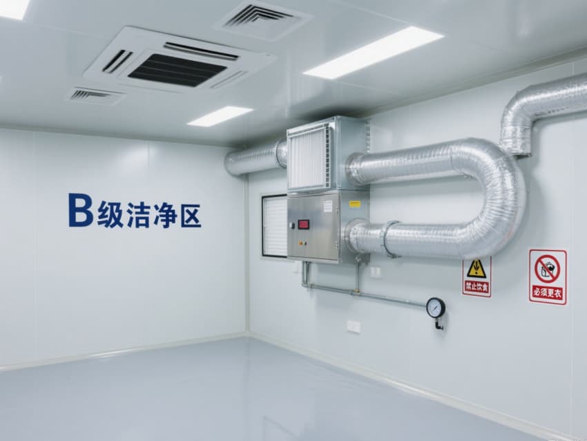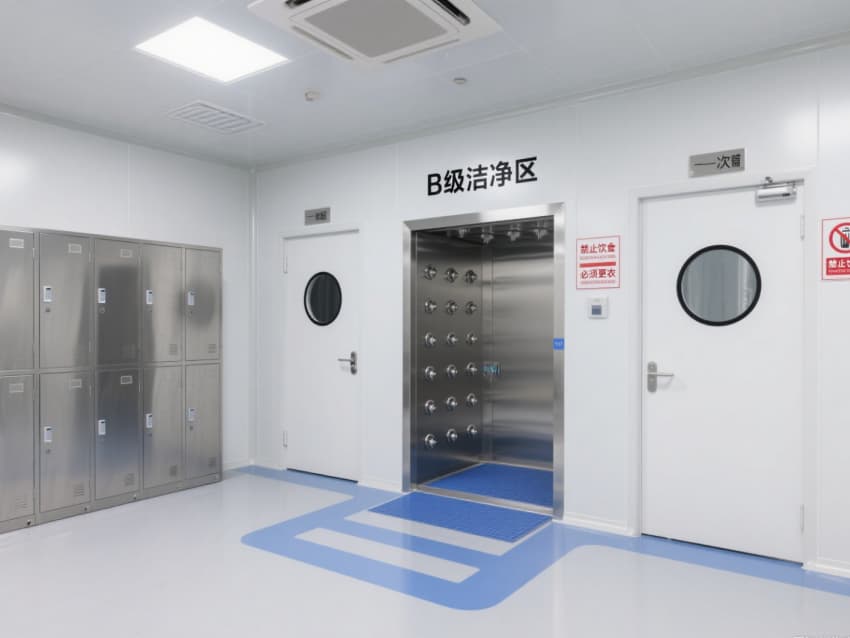 頂部嵌入式高效送風(fēng)口形成垂直層流,配合側(cè)下回風(fēng)系統(tǒng)實(shí)現(xiàn)每小時(shí)15-25次空氣置換,恒溫恒濕系統(tǒng)精準(zhǔn)控制溫度(18-26℃)、濕度(45-65%)。不銹鋼潔凈門窗與傳遞窗采用高氣密性密封結(jié)構(gòu),嵌入式LED潔凈燈提供≥300lux均勻照明,全方位營(yíng)造安全、精準(zhǔn)的生物制藥生產(chǎn)基礎(chǔ)環(huán)境。