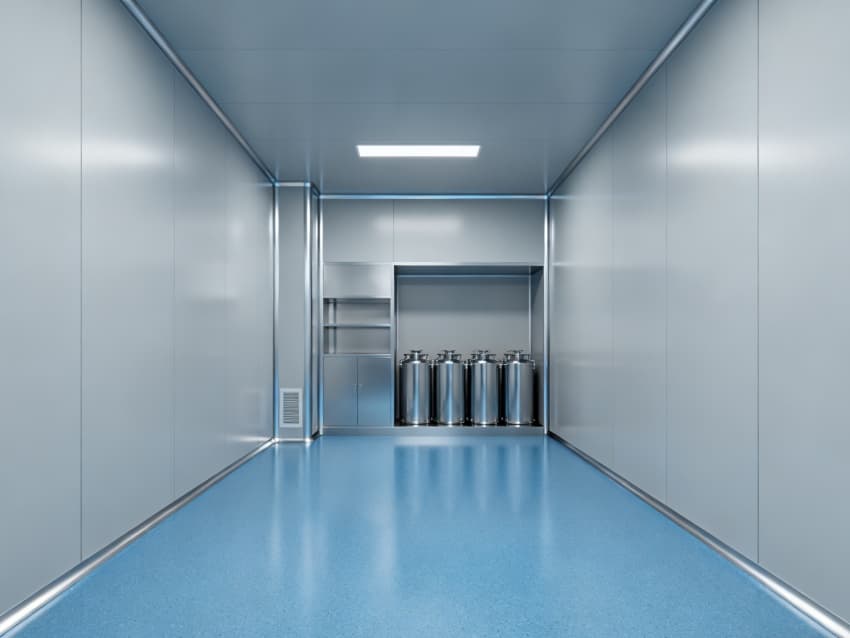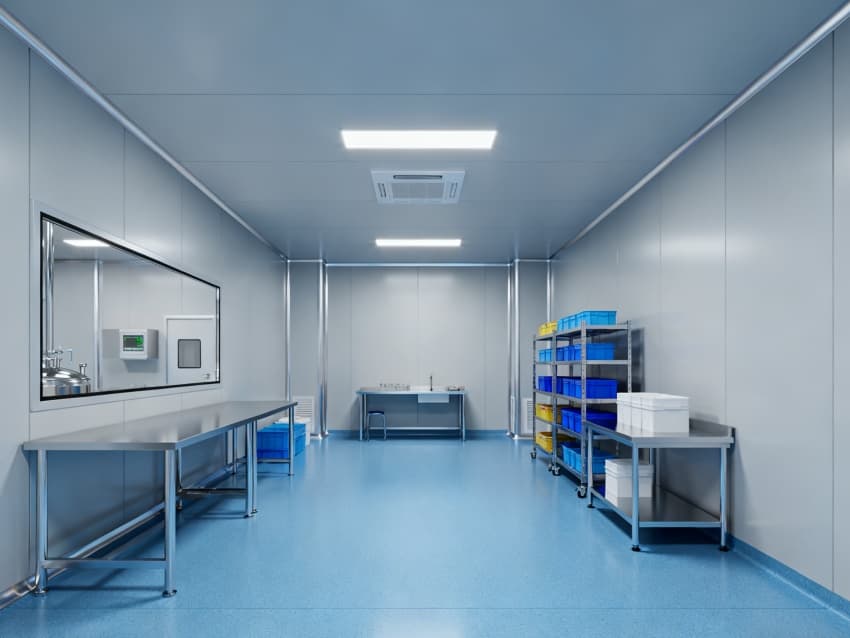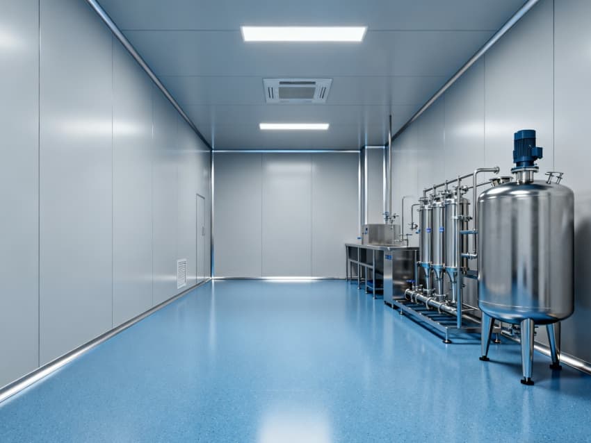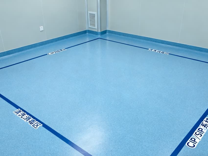 設(shè)計(jì)在環(huán)境防護(hù)上針對(duì)性突出:地面采用藍(lán)色耐腐環(huán)氧材質(zhì),可耐受酸堿類藥劑侵蝕,且無(wú)縫拼接設(shè)計(jì)便于清潔消毒;四周淺灰色抗菌墻壁采用防霉涂層處理,配合圓弧墻角結(jié)構(gòu),避免藥液殘留與粉塵堆積,搭配頂部層流送風(fēng)系統(tǒng),能穩(wěn)定維持萬(wàn)級(jí)潔凈度,滿足藥劑配液對(duì)微環(huán)境無(wú)菌性的嚴(yán)苛要求。