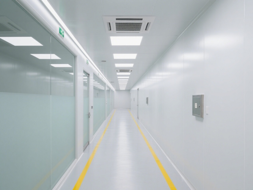 精準(zhǔn)還原電子行業(yè)潔凈空間,白灰主色調(diào)貫穿整體,風(fēng)格簡(jiǎn)約專業(yè)且質(zhì)感統(tǒng)一。淺白墻面搭配淺灰地面、金屬色設(shè)備接口線條,既符合電子車間低塵、抗靜電的核心需求,又通過色調(diào)層次避免空間單調(diào),視覺上凸顯潔凈通透的特質(zhì)。?
