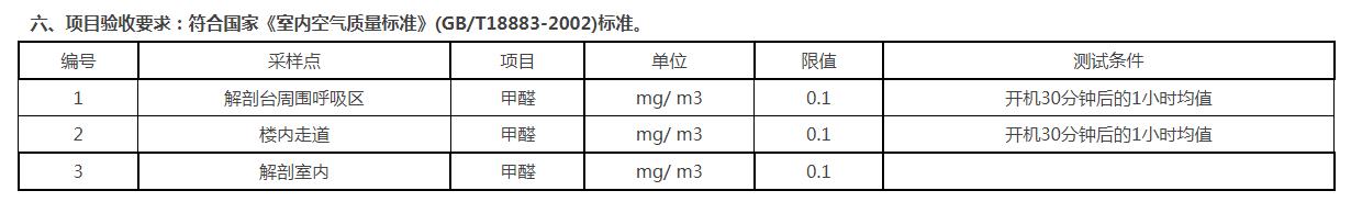 六、項(xiàng)目驗(yàn)收要求:符合國家《室內(nèi)空氣質(zhì)量標(biāo)準(zhǔn)》(GB/T18883-2002)標(biāo)準(zhǔn)。