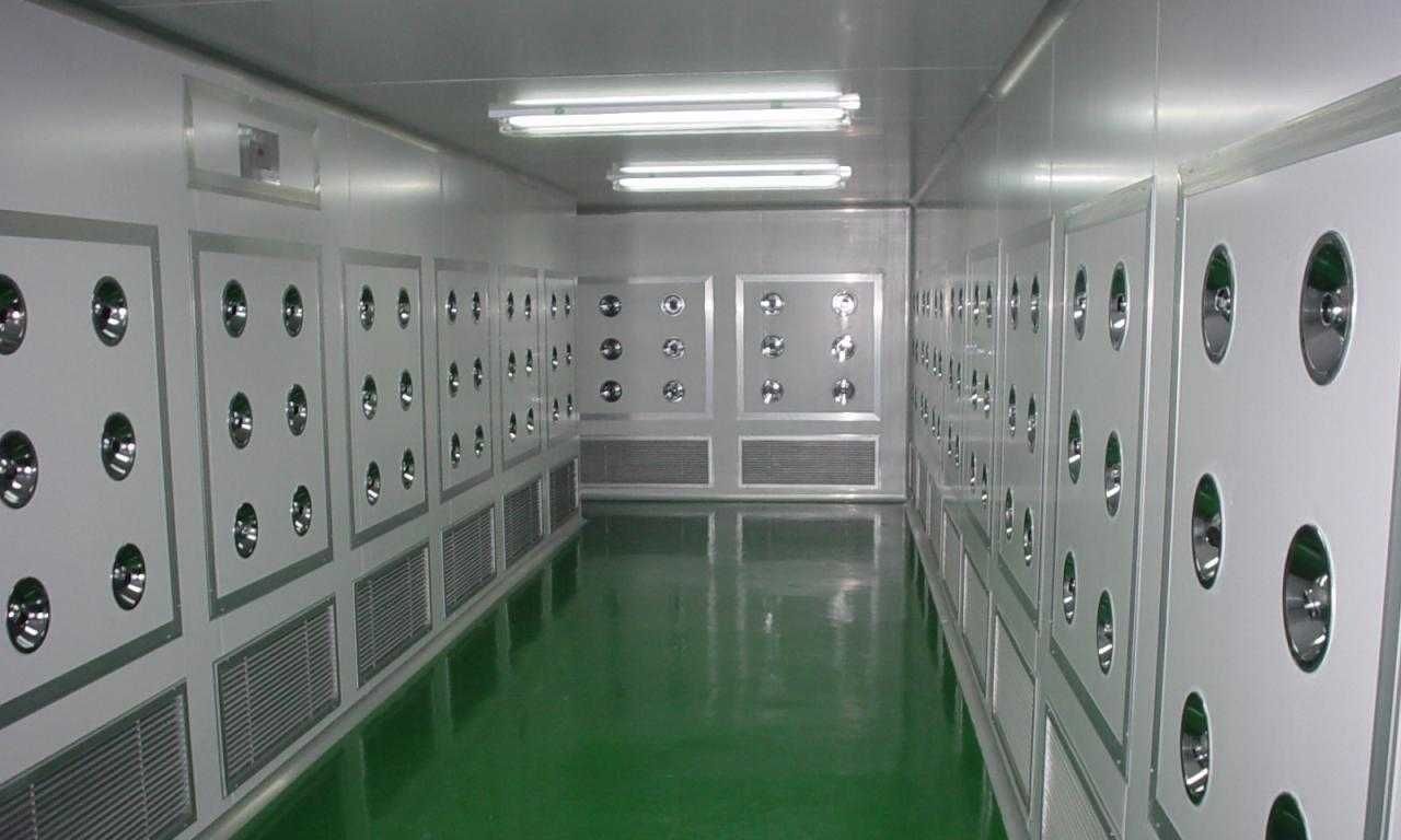 風(fēng)淋室是凈化工程中不可缺少的一部分,是進(jìn)入潔凈室所必需的通道,可以減少進(jìn)出潔凈室所帶來的污染問題,是一種通用性較強(qiáng)的局部凈化設(shè)備,安裝于潔凈室與非潔凈室之間。風(fēng)淋室應(yīng)用于微電子、光電、半導(dǎo)體、醫(yī)藥、食品、化工、航空、汽車、印刷、實(shí)驗(yàn)室等各個(gè)無塵車間與非無塵車間、階梯潔凈度車間中,用于從低潔凈度房間進(jìn)入高潔凈度房間過程中除去人各部位大于0.3微米粉塵顆粒,以免進(jìn)入潔凈房后帶去污染。同時(shí)也起到氣流緩沖作用,因?yàn)樵陂_門的過程中,附帶有空氣的流動(dòng),風(fēng)淋室很好的把氣流流動(dòng)停于風(fēng)淋室內(nèi)部,很好的避免了空氣流動(dòng)所帶來的空氣污染。