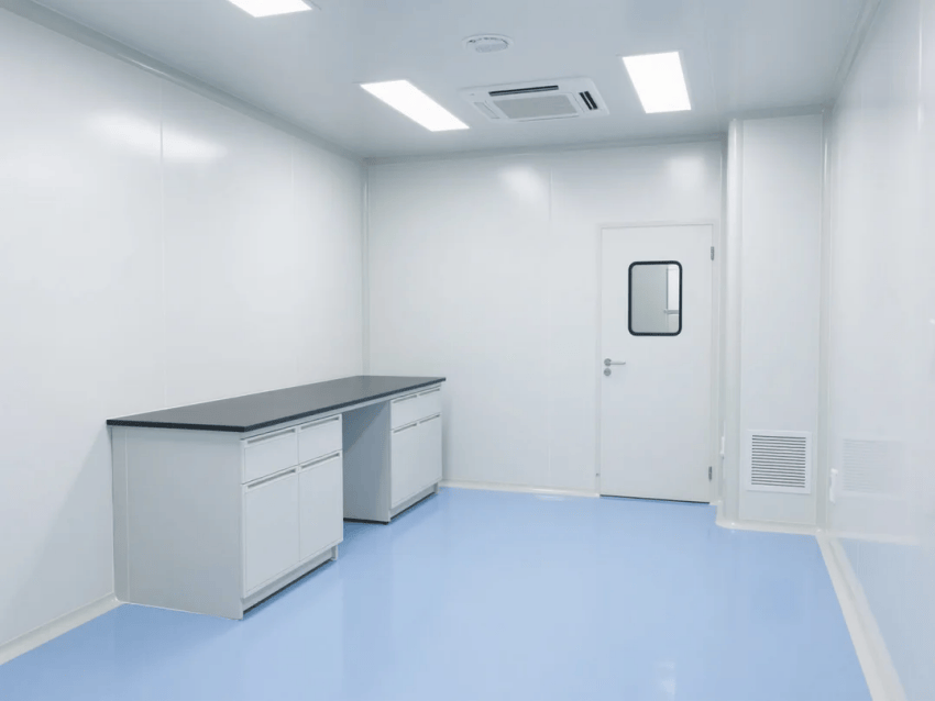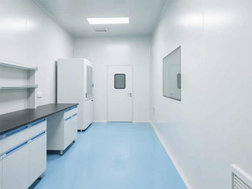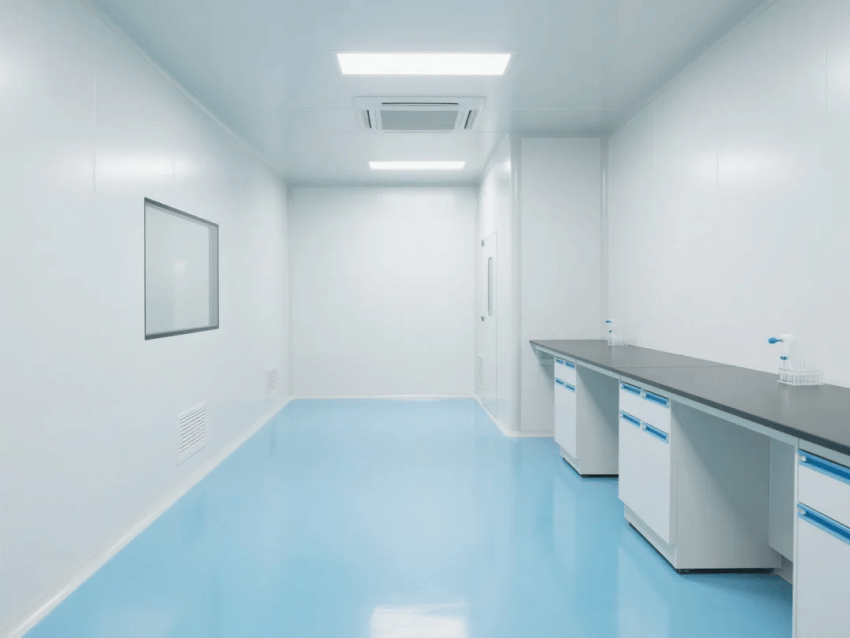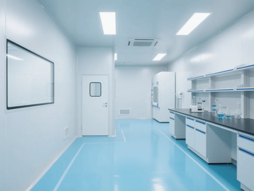 本方案采用生物科技極簡(jiǎn)風(fēng)格,嚴(yán)格遵循ISO14644-1Class6潔凈標(biāo)準(zhǔn)。空間以純白抗菌彩鋼板墻體與淺藍(lán)環(huán)氧樹脂地坪構(gòu)建主體框架,營(yíng)造純凈、高效的檢測(cè)環(huán)境。墻體采用50mm厚醫(yī)療級(jí)抗菌彩鋼板,所有接縫處采用R30mm圓弧處理工藝,確保無衛(wèi)生死角。淺藍(lán)環(huán)氧地坪添加防滑顆粒,摩擦系數(shù)≥0.6,同時(shí)具備優(yōu)異的耐化性。