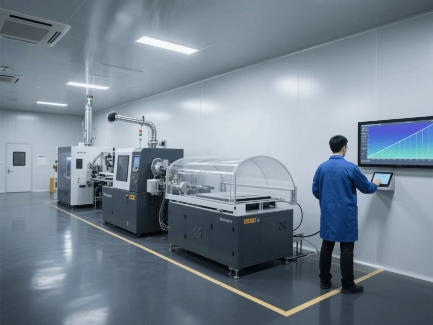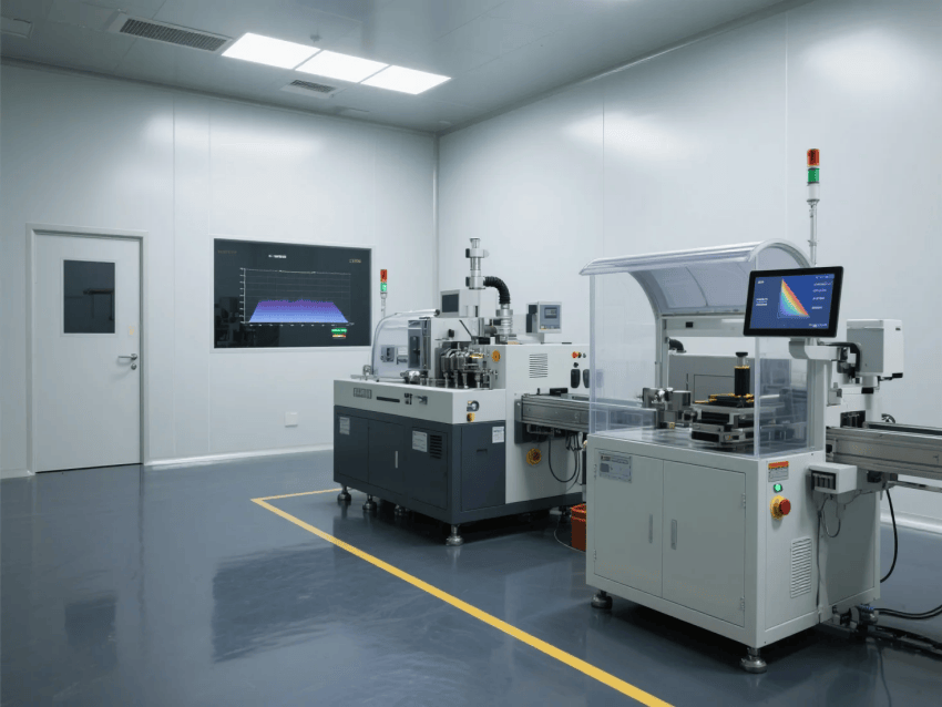 空氣凈化系統(tǒng)采用FFU+ULPA超高效過濾組合,換氣次數(shù)≥40次/h,核心鍍膜區(qū)設(shè)置Class100潔凈工作臺(tái);