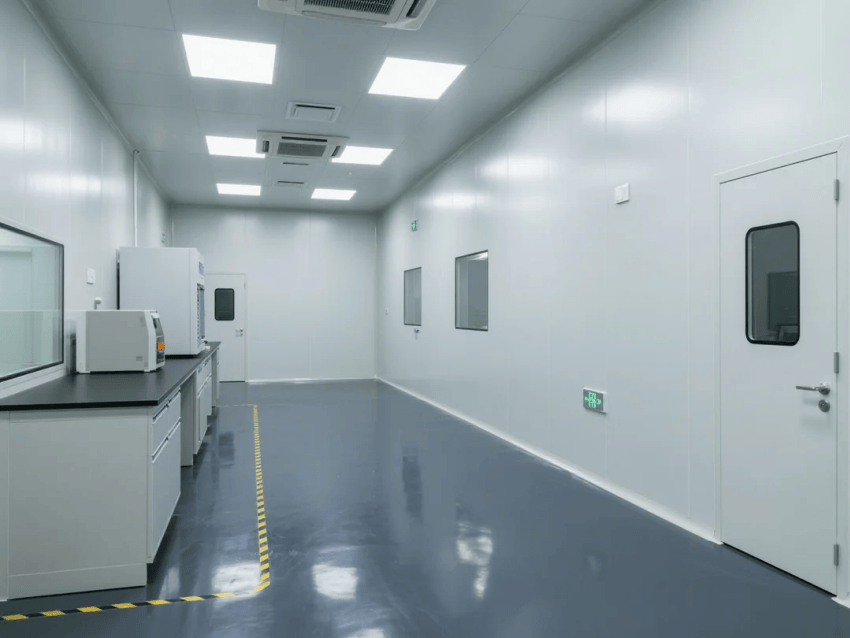 本工程嚴(yán)格遵循ISO14644-1Class7標(biāo)準(zhǔn),采用"科技工業(yè)風(fēng)"設(shè)計(jì)語言,打造高精度氣密檢測環(huán)境。實(shí)驗(yàn)室以白色彩鋼板墻體與深灰環(huán)氧防靜電地坪形成鮮明視覺對比,營造兼具科技感與功能性的檢測空間。