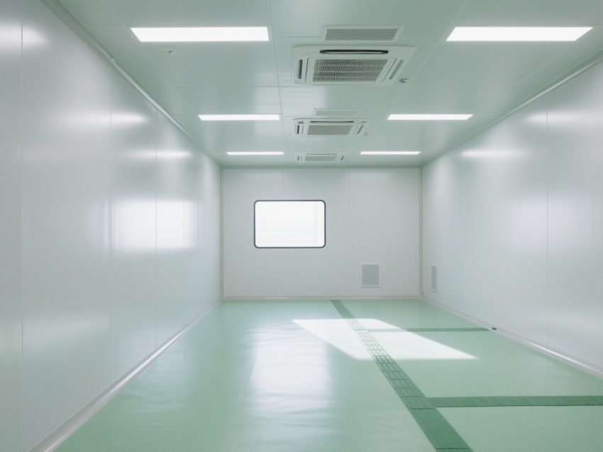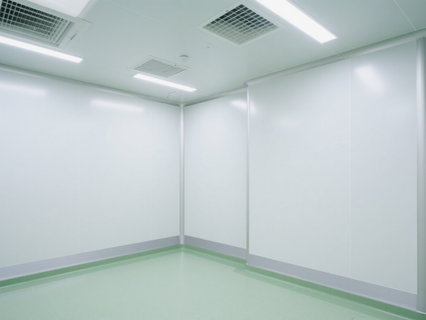 實(shí)驗(yàn)室內(nèi)部采用了白色和淺綠色為主的配色方案,營造出一種干凈、整潔的視覺感受。墻面、地面和天花板均采用無縫設(shè)計(jì),便于清潔和消毒,防止微生物和灰塵的積聚。照明系統(tǒng)明亮且均勻,提供了良好的工作環(huán)境。
