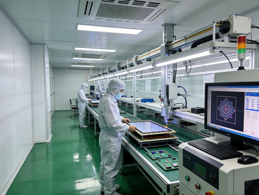 白色墻面采用工業(yè)級高潔凈涂層,推行無縫拼接工藝,陰陽角采用圓弧倒角設(shè)計,徹底消除積塵死角,保障潔凈度達(dá)標(biāo)。廠房科學(xué)劃分陣列區(qū)、成盒區(qū)、模組組裝區(qū)等核心區(qū)域,陣列區(qū)配備百級層流凈化與高精度恒溫恒濕系統(tǒng),成盒區(qū)設(shè)置無菌防護(hù)隔離裝置,各區(qū)域均預(yù)留智能生產(chǎn)設(shè)備接口與專用管線通道,全方位保障顯示器件生產(chǎn)的精準(zhǔn)性與穩(wěn)定性。