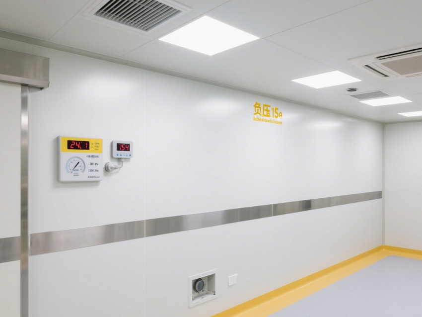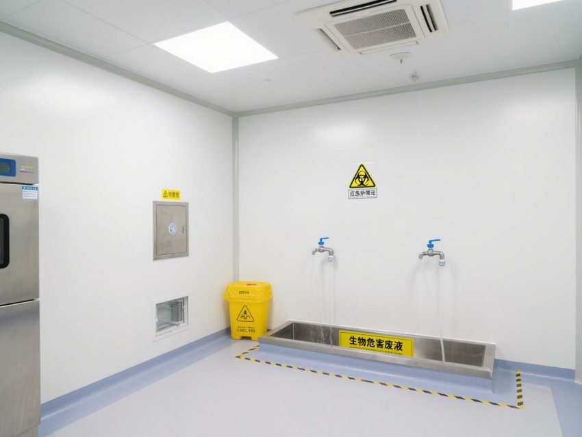 內(nèi)部設(shè)施專業(yè)且完善,生物安全柜為實(shí)驗(yàn)操作提供無(wú)菌防護(hù);各類氣路、水路接口布局規(guī)范,滿足檢測(cè)過程的資源供應(yīng);配備應(yīng)急沖眼設(shè)施與生物危害廢液處理區(qū),保障實(shí)驗(yàn)安全。空間設(shè)計(jì)注重潔凈與防護(hù),墻面、地面為無(wú)縫抗菌材質(zhì),便于消毒滅菌,黃色警示線清晰劃分功能區(qū)域,各類監(jiān)控儀表實(shí)時(shí)顯示溫濕度、壓差等關(guān)鍵參數(shù),確保實(shí)驗(yàn)環(huán)境穩(wěn)定可控。