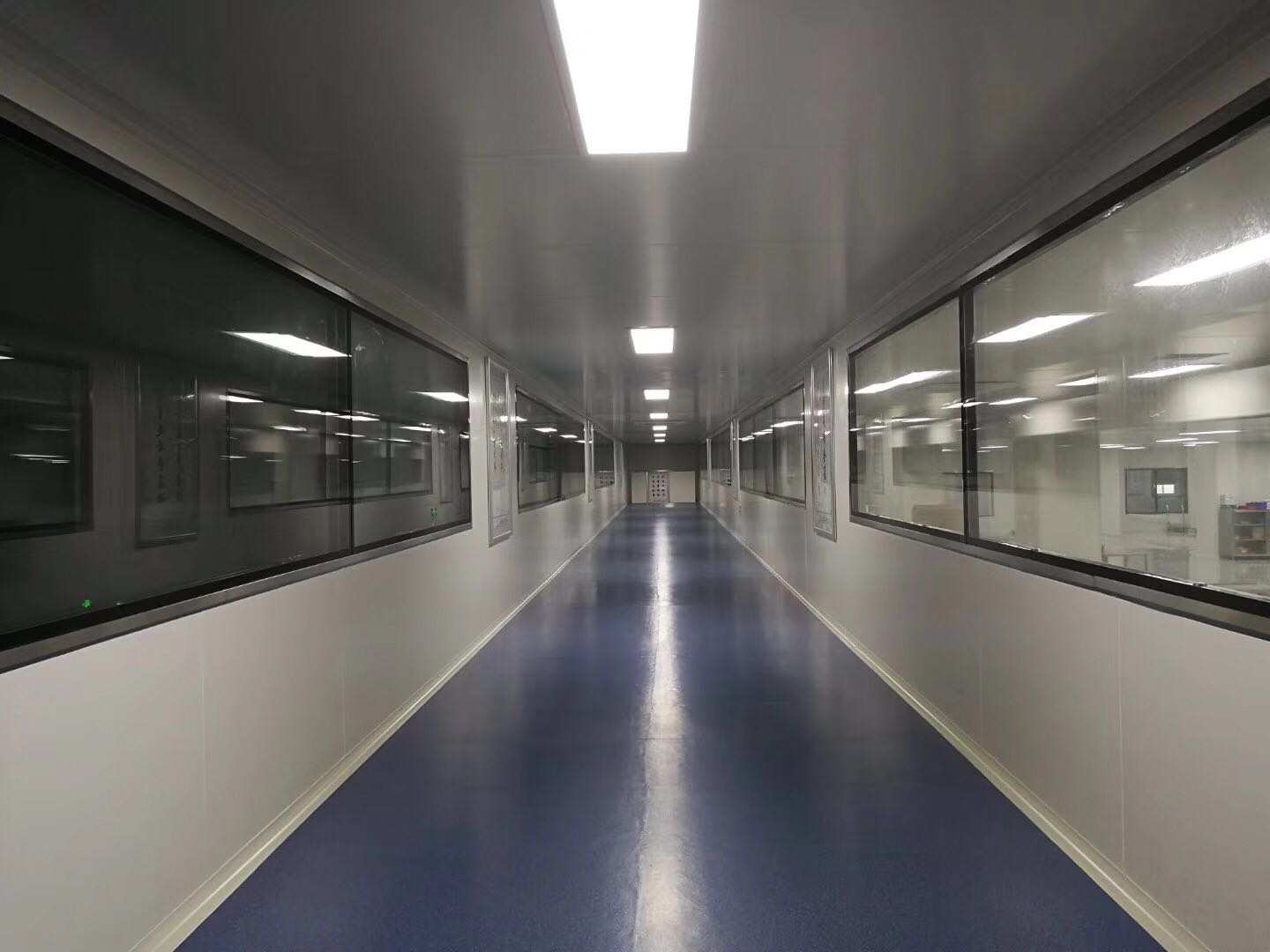 2.目前國內(nèi)保健品GMP凈化車間較多采用夾心彩鋼板結(jié)構(gòu)。安裝時,墻面采用企口型,而吊頂采用普通型彩鋼板,使用新型“單、雙”密封的夾心彩鋼板配套鋁型材。緊固件及管線在板材內(nèi)暗裝,這種方法使車間內(nèi)壁及吊頂看不到螺絲和鉚釘,同時使門窗密閉程度提高,并在保健品凈化車間內(nèi)使用有聯(lián)鎖和紫外燈裝置的傳遞窗(柜)。它能保持室內(nèi)正壓穩(wěn)定,防止污染,達(dá)到GMP要求。
