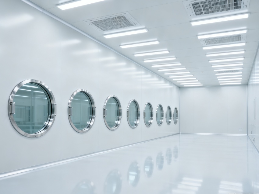 材料選用兼顧潔凈與維護(hù):地面鋪設(shè)雙層環(huán)氧自流平,底層強(qiáng)化抗壓,面層抗污處理,常規(guī)清潔便捷;墻面采用卡扣式彩鋼板,支持單塊拆卸,降低維護(hù)成本;門(mén)窗配備氣密平移門(mén)、自動(dòng)閉門(mén)器及密封膠條,隔絕外界污染。?