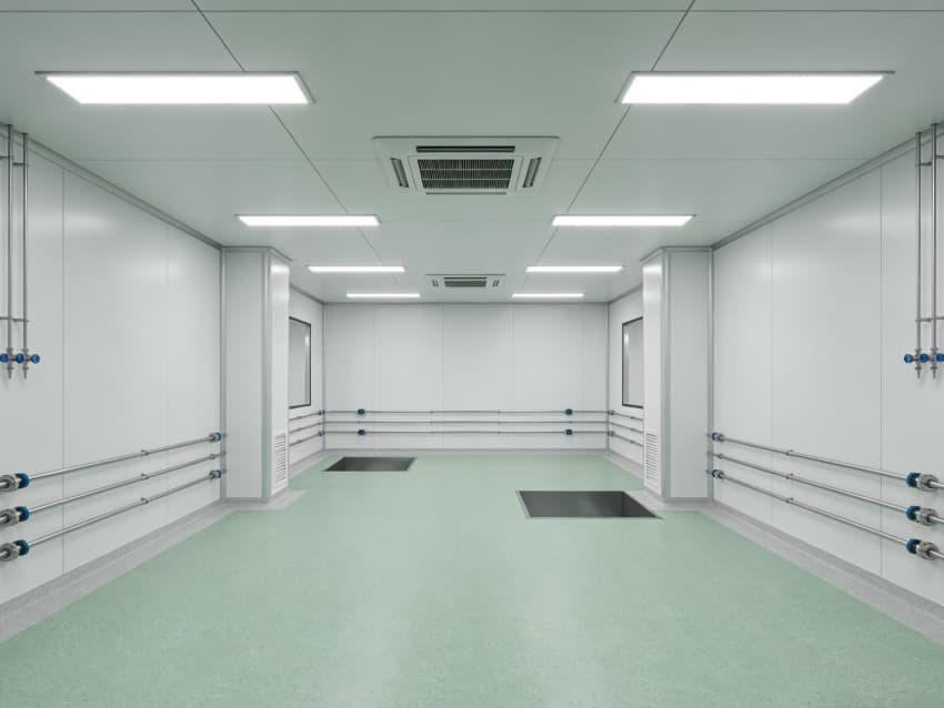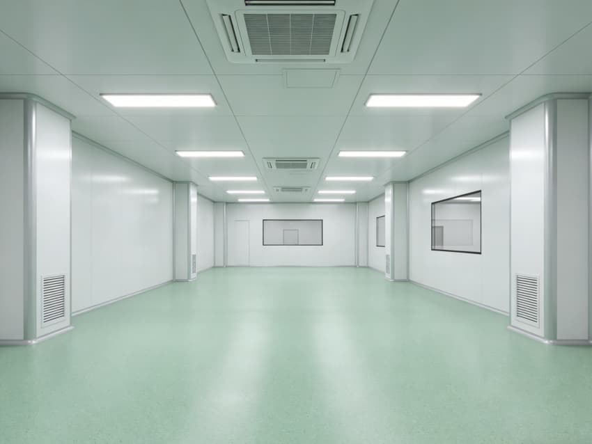 車間內(nèi)部施工工藝凸顯專業(yè)優(yōu)勢:地面采用淺綠色環(huán)氧自流平施工工藝,經(jīng)基層打磨、界面處理、環(huán)氧砂漿找平、自流平罩面四道工序,表面平整度誤差≤1mm/m,兼具抗菌、抗化學(xué)腐蝕特性;墻面采用白色潔凈抗菌涂層施工,推行無縫拼接工藝,陰陽角采用圓弧倒角處理,杜絕清潔死角,涂層附著力達1.5MPa以上,滿足頻繁消殺需求。