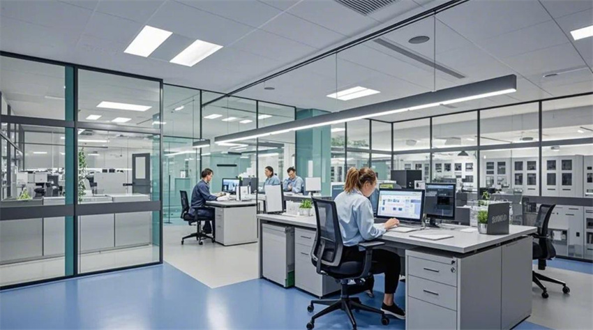 2000平方米化妝品車間,現(xiàn)代潔凈風(fēng)格。車間分為生產(chǎn)區(qū)、包裝區(qū)、原料存儲區(qū)和辦公區(qū)。生產(chǎn)區(qū)占50%,包裝區(qū)占30%,原料存儲區(qū)占10%,辦公區(qū)占10%。生產(chǎn)區(qū):防靜電環(huán)氧地坪(淺灰色),白色彩鋼板墻面和天花板,頂部高效過濾器(HEPA),不銹鋼工作臺,設(shè)備排列整齊。包裝區(qū):自動化包裝流水線,地面為防靜電PVC地板(淺色)。原料存儲區(qū):貨架整齊,溫濕度控制。辦公區(qū):玻璃隔斷,現(xiàn)代簡約辦公桌。整體色彩:白色、淺灰色、淺綠色點綴。