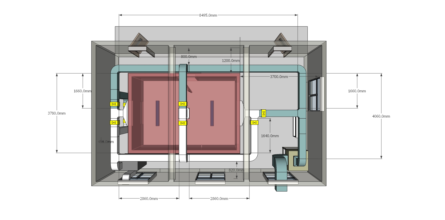 實(shí)驗(yàn)外室尺寸:10.3m×6.2m×3.5m(長×寬×高)