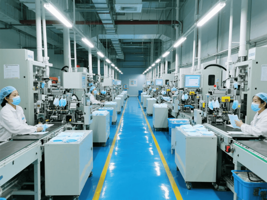 本方案采用"醫(yī)療工業(yè)極簡(jiǎn)風(fēng)",符合YY/T0969-2013口罩行業(yè)標(biāo)準(zhǔn)。車(chē)間按功能分區(qū): 原料區(qū)(熔噴布恒溫儲(chǔ)存23±2℃) 生產(chǎn)區(qū)(超聲波焊接噪音<75dB) 滅菌